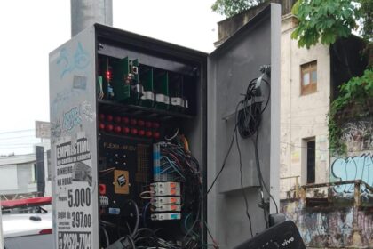 Caixa controladora do semáforo foi destruída por vândalo, deixando o cruzamento sem controle adequado. A…